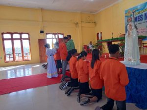 Dalam simbolisasi penuh makna, para pengurus meletakkan lilin di depan patung Bunda Maria, kemudian mencium tiga bendera, sebagai tanda kesetiaan dan komitmen mereka terhadap tugas dan lembaga.